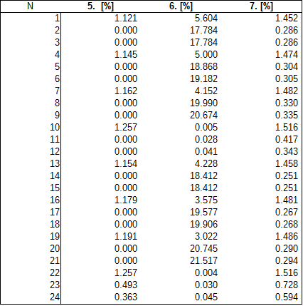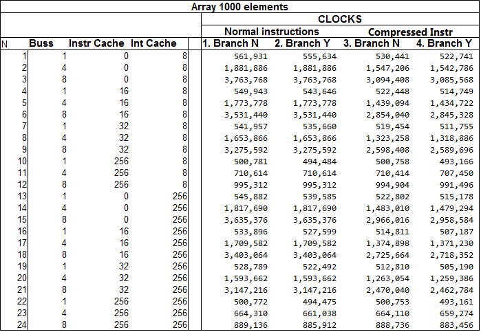 Продължение на таблицата: N – е номера на реда 5. Подобрението на производителността в % при нормални инструкции със и без предсказване на прехода = 100*(1. - 2.)/1. 6. Подобрението на производителността в % при нормални към компресирани инструкции без предсказване на преход = 100*(1. - 3.)/1. 7. Подобрението на производителността в % при компресирани инструкции със и без предсказване на прехода = 100*(3. - 4.)/3. * 1. 2. 3. 4. са колонките от таблицата под Cloks